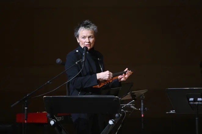 Music also has the capacity to draw people together, she says. “It invades your body quickly,” says Anderson. “If you see people standing in front of a painting, you rarely—even if it’s a painting that moves them incredibly—see them cry. But listen to your favorite song or songs, and people cry all the time. It just comes into your body in a different way and makes you move, makes you cry, and makes you laugh. It’s a very physical art form.”