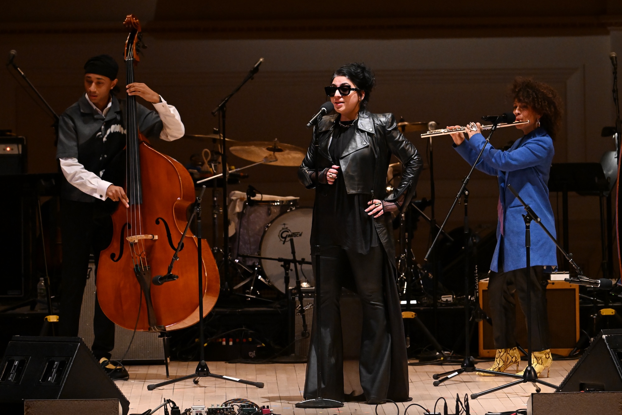 Keeping schedule within the finely tuned run of performances, Pakistani-American singer and composer Arooj Aftab, along with flutist Domenica Fossati, Zwelakhe-Dume Bell le Pere on stand-up bass, and harpist Maeve Gilchrist, shared the meditative vignettes “Raat Ki Rani,” and “Mohabbat,” before Tibetan artist Tenzin Choegyal came out, surrounded by the YindaTin Children of Tibet choir, who were making their Carnegie Hall debut and singing in Tibetan. Backed by the Scorchio Quartet, who would reappear throughout the evening, and with the help of some audience participation. Choegyal shared “GangeRi Rawe” from his forthcoming album Be the Sky.