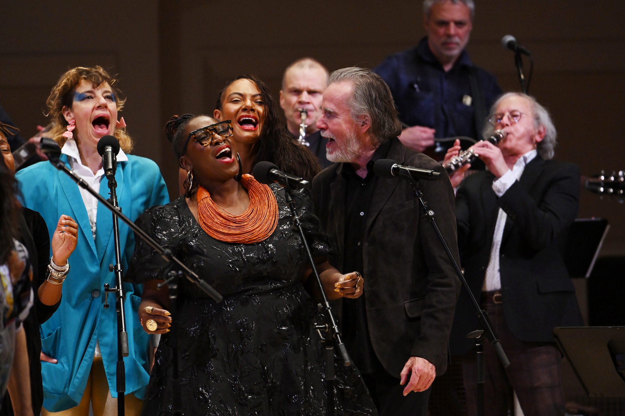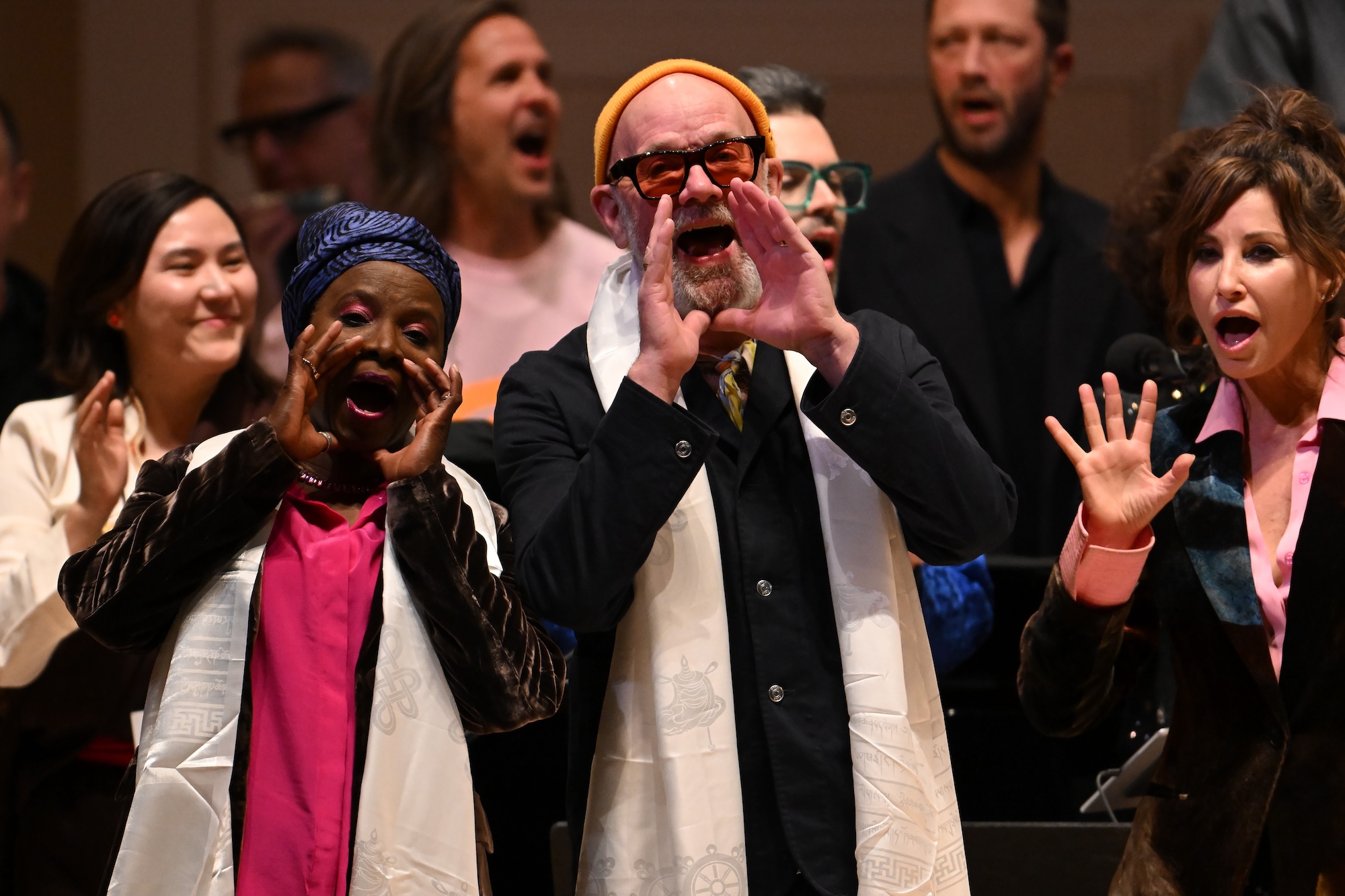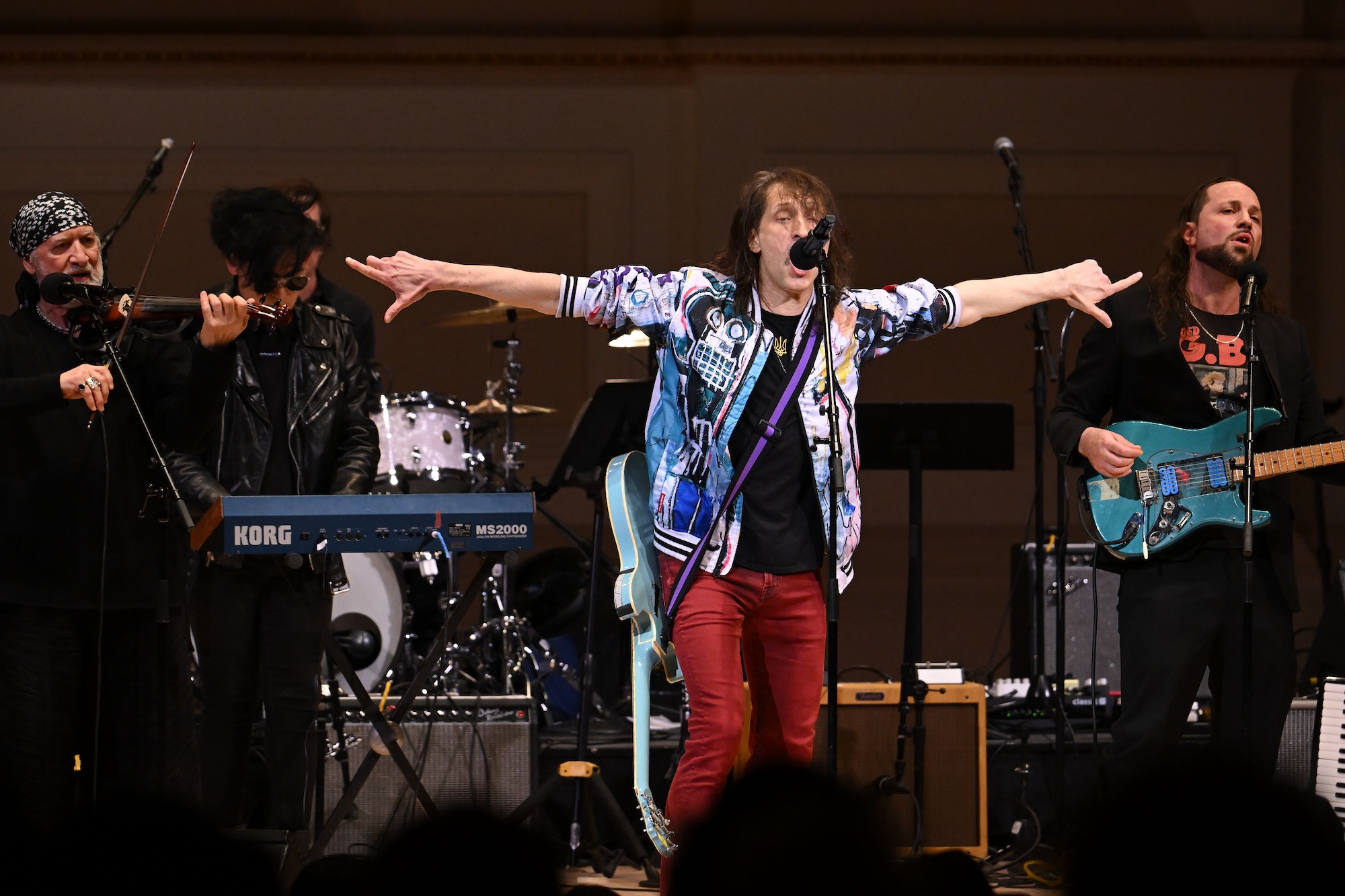 Bursting around the Carnegie stage, Gogol Bordello’s Eugene Hütz said “The struggle of Ukraine, one in the same with the struggle of Tibet House,” before jumping into an explosive “Solidarity,” joined by Gershon on the jaw harp, and “We Mean It, Man” before the entire group of performers, except Smith, joined on her powerful 1988 anthem “People Have the Power.”